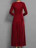 Dame Maxi Kjole – Fløjlslook – Elegant Pasform – Lange Ærmer – Aftenstil